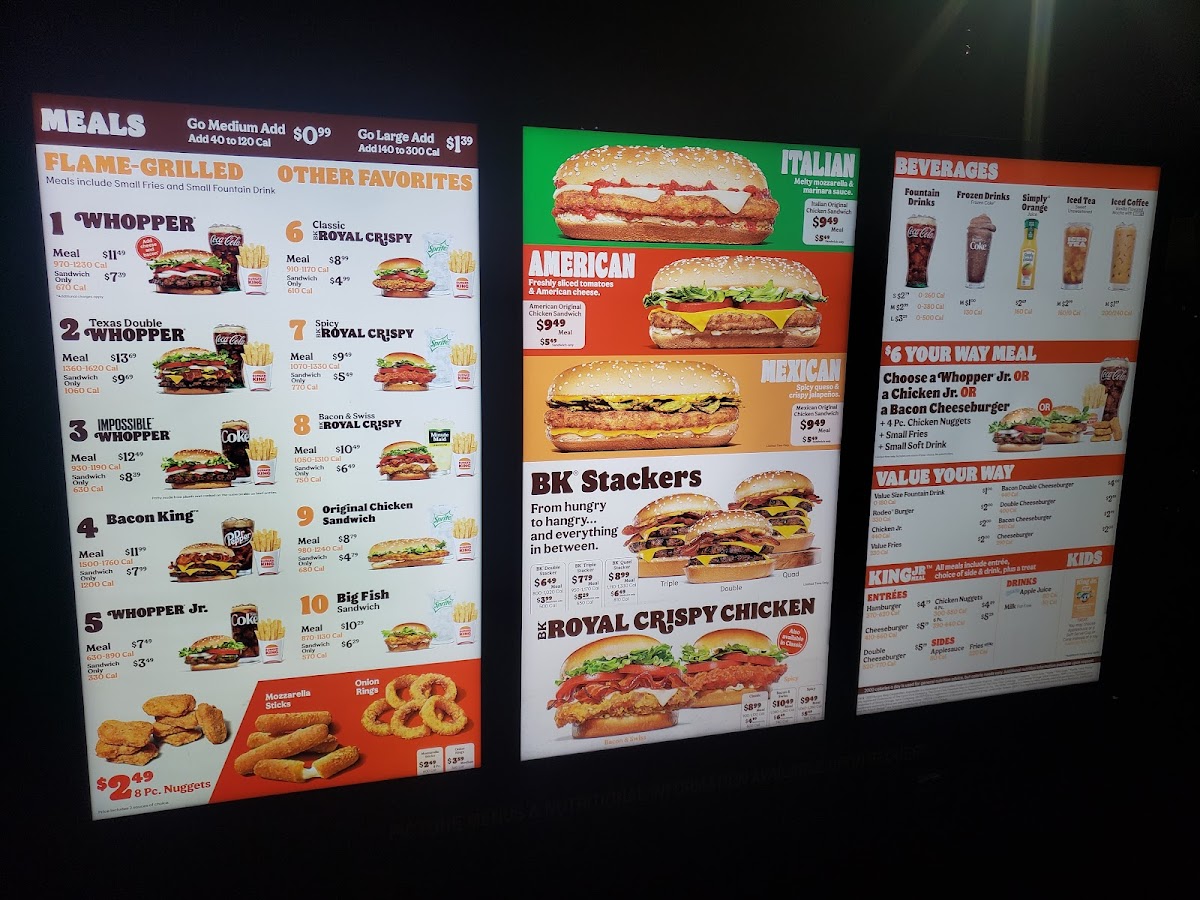 (4) Whopper Sandwiches or Original Chicken Sandwiches, (4) Medium Fries or Medium Onion Rings (Comes with one Zesty dipping sauce), (1) 8 Pc. Nuggets (Comes with choice of up to two sauces)